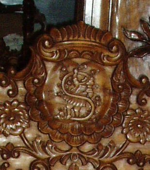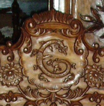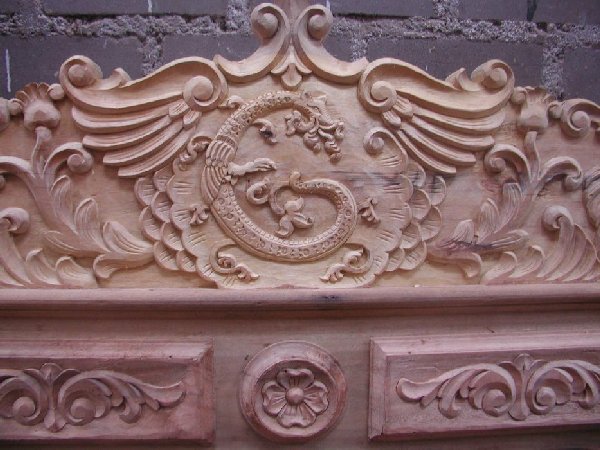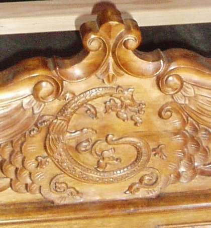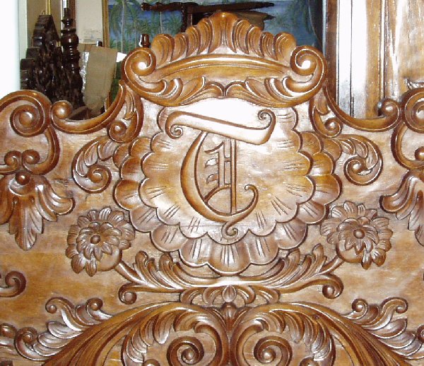 carved initials, custom hand carved leather beds, architectural beds for castles,