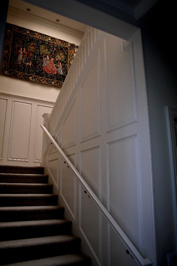 Luginsland is a showroom of master finished carpentry. Solid wood mouldings, doors, and stacked combinations on cornices, baseboards, library paneling, and coffered ceilings show a quality in old Georgian craftsmanship rarely seen in many years.