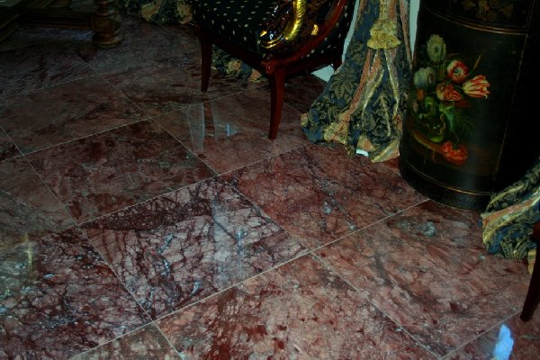 X 24") of Rosso Malaga, a burgundy colored limestone with intriguing deposits